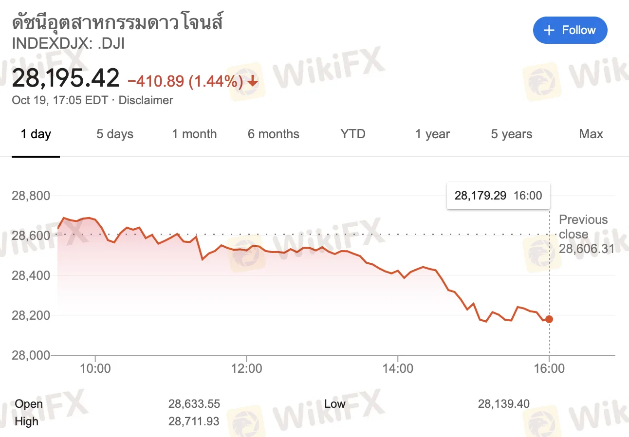 ดัชนีเฉลี่ยอุตสาหกรรมดาวโจนส์ ปรับตัวร่วงลง 410.89 จุด หรือ 1.44% ปิดที่ 28,195.42 จุด ดัชนีเอสแอนด์พี 500 ร่วงลง 56.89 จุด หรือ 1.63% ปิดที่ 3,426.92 จุดและดัชนีแนสแด็ก ร่วง 192.67 จุดหรือ 1.65% ปิดที่ 11,478.88 จุด