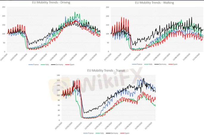 นอกจากนี้ข้อมูลทางเศรษฐกิจจำนวนหนึ่งที่เปิดเผยเมื่อเร็ว ๆ นี้แสดงให้เห็นว่าการควบคุมการแพร่ระบาดส่งผลเสียต่อเศรษฐกิจ ดัชนีผู้จัดการฝ่ายจัดซื้อของอุตสาหกรรมบริการในยูโรโซนในเดือนตุลาคมอยู่ที่ 46.2 ซึ่งต่ำกว่าที่คาดไว้ 47 ตัวบ่งชี้การเดินทางทั้งสามประการ ได้แก่ การเดินการขับรถและการขนส่งสาธารณะยังลดลงอย่างต่อเนื่อง