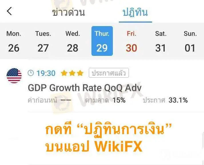(สามารถดูการประกาศตัวเลขของประเทศต่างๆที่มีผลต่อค่าเงินได้บนแอป WikiFX ธงชาติหมายถึงค่าเงินที่จะได้รับผลกระทบ ดาวหมายถึงความรุนแรง 3 ดาวคือแรงที่สุด)