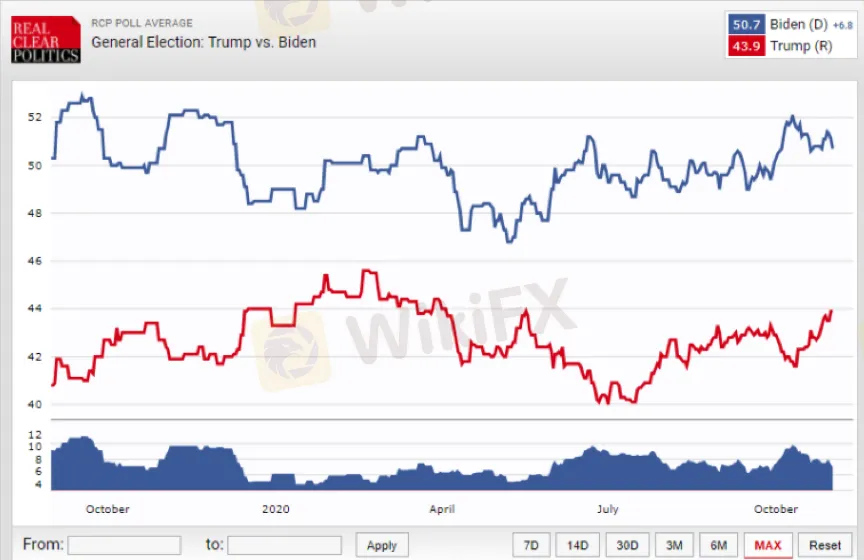WikiFX News (3 พ.ย. ) - วันที่ 3 พฤศจิกายนตามเวลาท้องถิ่นสหรัฐอเมริกาจะเริ่มการเลือกตั้งทั่วไปอย่างเป็นทางการ ผลสำรวจล่าสุดแสดงให้เห็นว่าไบเดนยังคงนำหน้าทรัมป์ น้ำมันดิบดีดตัวขึ้นจากแนวรับสำคัญที่ 36.45 ในวันจันทร์และคาดว่าจะเพิ่มขึ้นในอนาคต