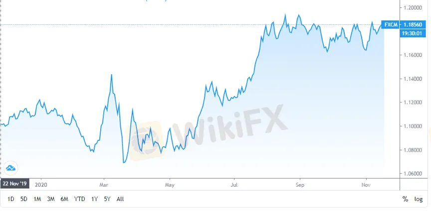 WikiFX News (18 พ.ย. ) - เมื่อเร็ว ๆ นี้ค่าเงิน EUR/USD เพิ่มขึ้นสูงสุดที่ 1.1869 เนื่องจากวัคซีนโควิดใหม่และการลงนามในข้อตกลงหุ้นส่วนทางเศรษฐกิจที่ครอบคลุมระดับภูมิภาค (RCEP) กระตุ้นความเสี่ยง แต่เงิน EUR/USD ยังคงเผชิญกับความเสี่ยงด้านขาลง