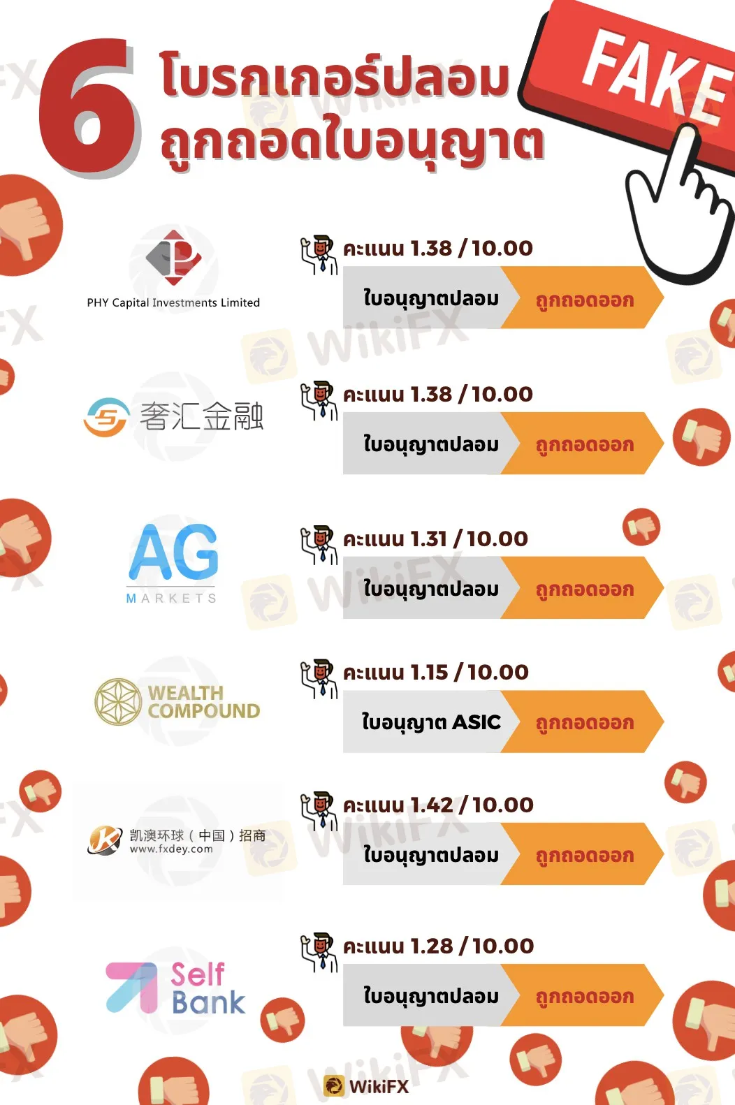 โบรกเกอร์ 6 รายถูกถอดใบอนุญาตในสัปดาห์นี้ ดาวน์โหลดแอป WikiFX เพื่อรับแจ้งเตือนโบรกเกอร์เถื่อน และคุณยังสามารถตรวจสอบโบรกเกอร์ Forex ของตนเองให้ง่ายยิ่งขึ้น เพราะ WikiFX ตรวจสอบมาให้แล้ว