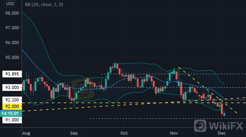 WikiFX News (3 ธ.ค. ) - ข้อมูลการจ้างงาน ADP เดือนพฤศจิกายนของสหรัฐที่เปิดเผยเมื่อวันพุธไม่เกินความคาดหมาย โดยได้รับผลกระทบนี้ดัชนีดอลลาร์สหรัฐลดลง 0.22% และลดลงต่ำกว่าระดับ 91 ในที่สุด ท่าทีที่นิ่งเฉยของเฟดและความหวังที่จะเริ่มการเจรจากระตุ้นเศรษฐกิจใหม่อีกครั้งอาจทำให้ดอลลาร์อ่อนค่าลง
