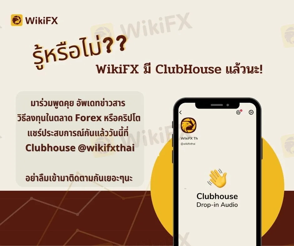 ตอนนี้ WikiFX ได้เปิดบัญชีใน Clubhouse แอพมาแรงที่สุดในตอนนี้ ทางทีมงานจะมีการพูดคุยในเรื่องการลงทุนในตลาด Forex หรือ ตลาดคริปโต ผู้ใช้จาก WikiFX สามารถมาติดตามเพื่อที่จะเตรียมตัวเมื่อเราเปิดการพูดคุยได้ทันเวลา! งานนี้ความรู้เพียบ ตามด่วน
