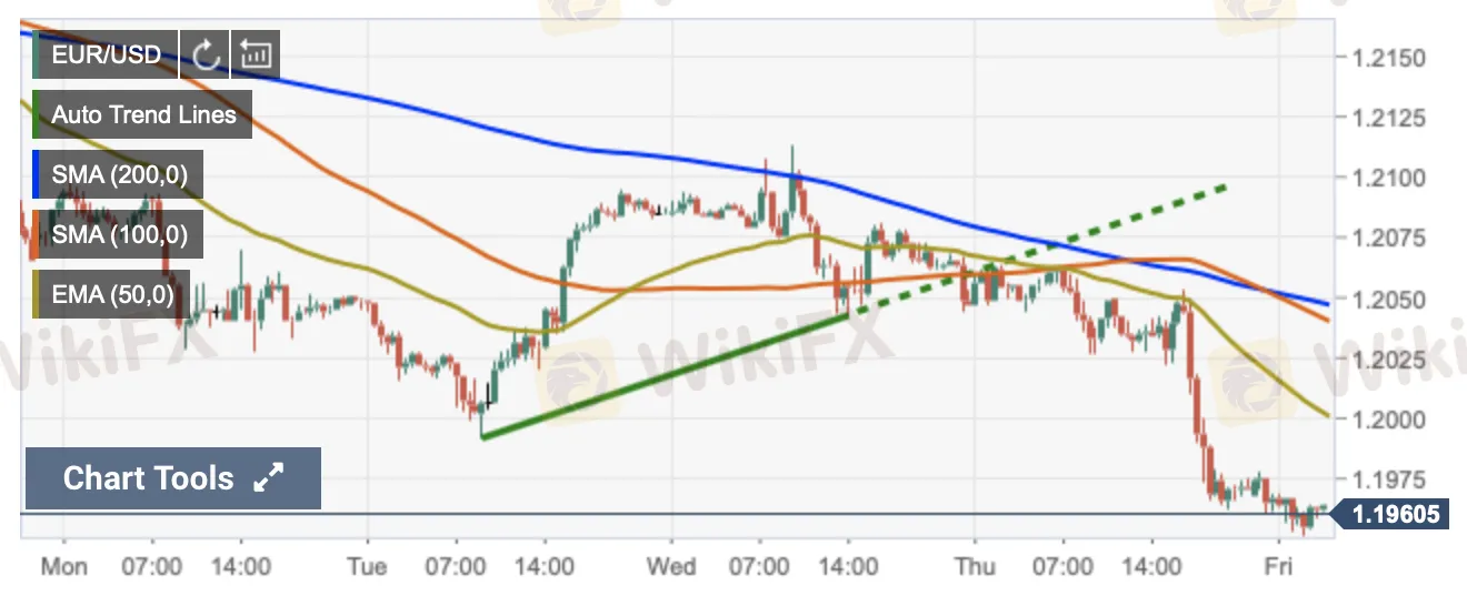 คู่สกุลเงิน EUR / USD ซื้อขายที่ระดับต่ำสุดประจำวันในโซนราคา 1.1970 ภาพระยะสั้นบ่งชี้ว่าทั้งคู่อาจลดลงไปอีกหลังจากตัวเลข Nonfarm Payroll ในคืนนี้