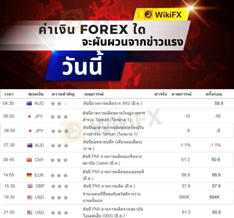 บทคัดย่อ:ตารางข่าวแรงกระทบค่าเงิน Forex วันที่ 1 เมษายน 2564
