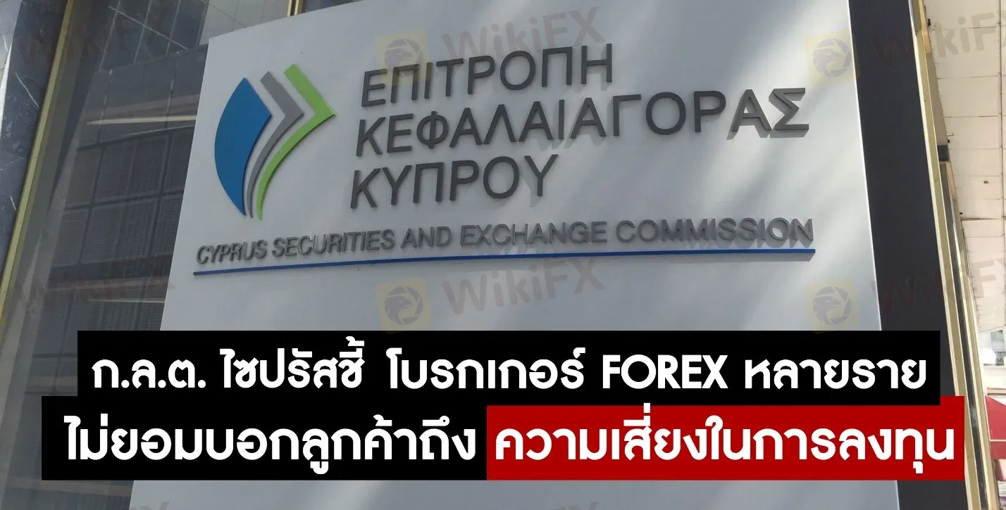บทคัดย่อ:สำนักงานคณะกรรมการกำกับหลักทรัพย์และตลาดหลักทรัพย์ไซปรัส (CySEC) ได้เผยแพร่ผลการทบทวนมาตรการการปฏิบัติตามกฎระเบียบที่ดำเนินการโดยหน่วยงานที่ได้รับการควบคุม ซึ่งรวมถึงโบรกเกอร์ Forex และ CFD (สัญญาส่วนต่าง ซึ่งเป็นตราสารการเทรดประเภทหนึ่งที่ใช้เข้าเทรดในตลาดเงิน)