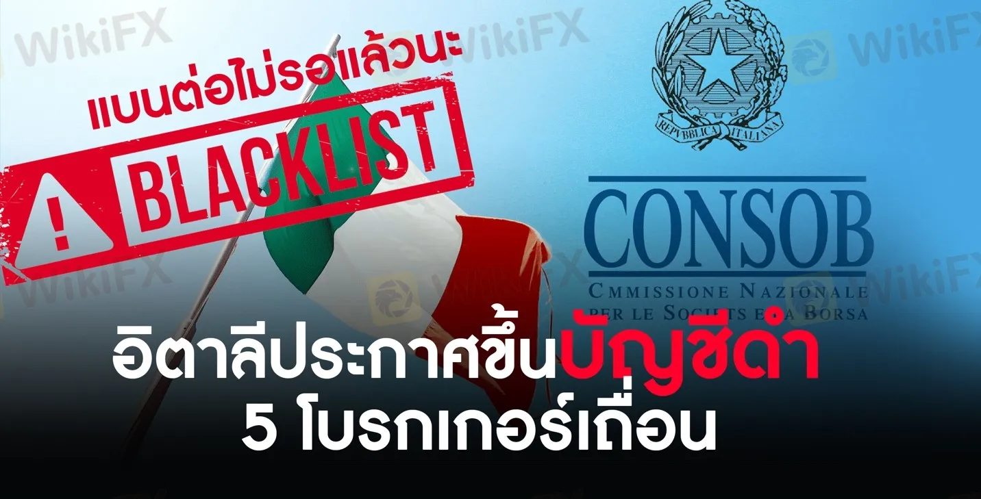 Consob ซึ่งเป็นหน่วยงานกำกับดูแลในอิตาลีประกาศเมื่อวันศุกร์ที่ผ่านมาว่า ได้บล็อกอีก 5 เว็บไซต์ที่ให้บริการทางการเงินในลักษณะที่ผิดกฎหมายในอิตาลี ซึ่งดำเนินการโดยใช้ชื่อ Italiano Invest, EZ2GO Ltd, Ozava Partners LTD, Pro Star และ New Traders Holdings โบรกเกอร์เหล่านี้ดำเนินการบริการซื้อขายผลิตภัณฑ์ Forex และ CFD และส่วนใหญ่มีเป้าหมายไปที่ลูกค้ารายย่อย
