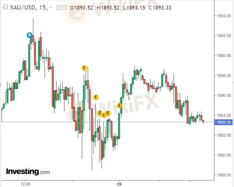 สรุป ราคาทองคําปิดทรงตัวแทบไม่เปลี่ยนแปลง ขณะที่ระหว่างวัน ราคาทองคําแกว่งตัวในกรอบ 1,903.62-1,888.35 ดอลลาร์ต่อออนซ์ โดยราคาทองร่วงลงทดสอบระดับต่ำสุด หลัง สหรัฐเผยตัวเลขผู้ยื่นขอสวัสดิการว่างงานรายสัปดาห์ลดลงเกินคาด 4