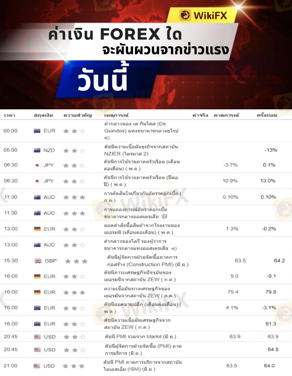 บทคัดย่อ:สกุลเงิน Forex ใดจะ 'ผันผวน' จากข่าวแรง / ตารางข่าว (ุ6 กรกฎาคม 2564)