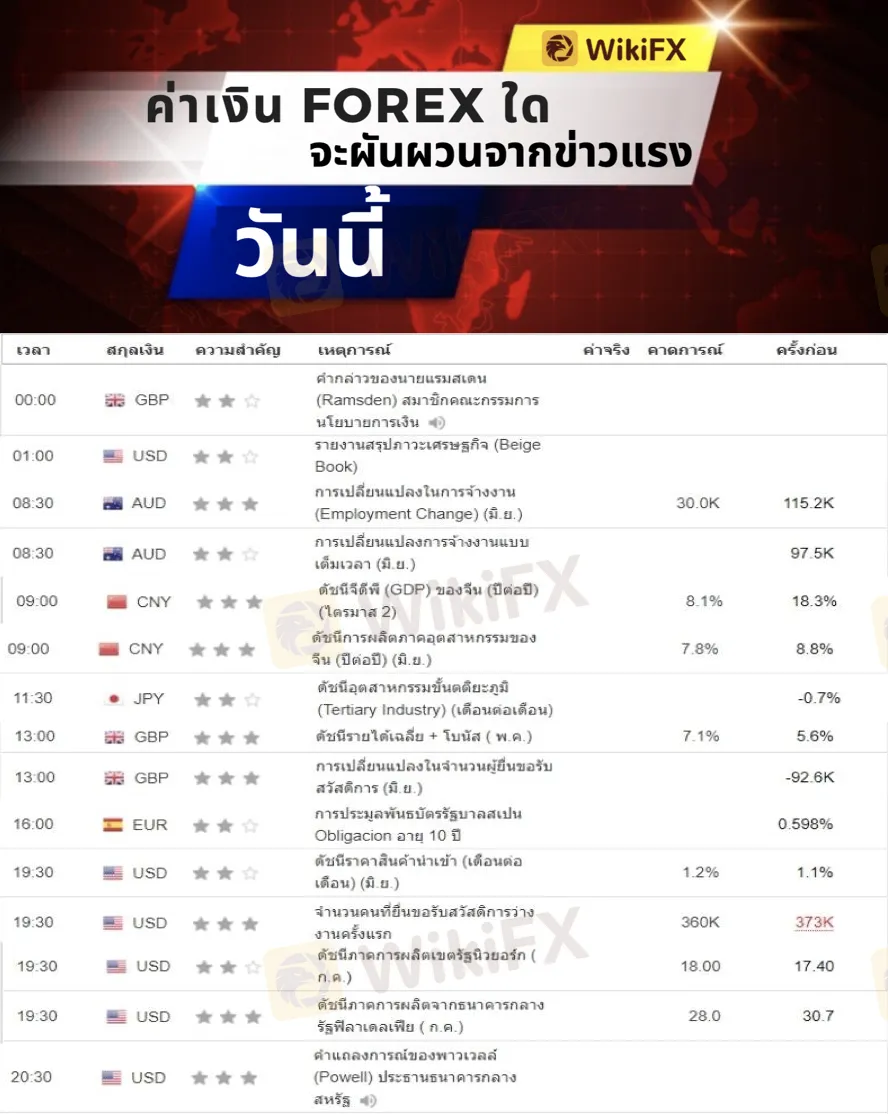 บทคัดย่อ:สกุลเงิน Forex ใดจะ 'ผันผวน' จากข่าวแรง / ตารางข่าว (15 กรกฎาคม 2564)