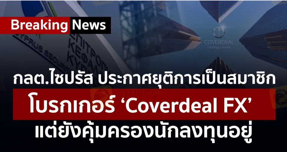 สำนักงานคณะกรรมการกำกับหลักทรัพย์และตลาดหลักทรัพย์แห่งไซปรัส (CySEC) ออกประกาศในสัปดาห์นี้ว่า Coverdeal Holdings Ltd. ซึ่งได้ยุติการให้บริการเมื่อปีที่แล้วนั้น ไม่ได้เป็นสมาชิกของ Investors Compensation Fund (ICF) อีกต่อไป