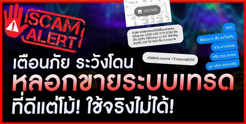 “โดนเหมือนกันครับ ทักมาทาง inbox ขายระบบ โดนไป 1,500 บาท จาก 3,000 บาท บอกจ่ายแค่50% ก่อน ให้โอนทันทีพูดโน้มน้าวเก่ง ระบบก็ธรรมดาครับ ไม่ใช่ระบบเทพอะไรก็ถือว่าซื้อประสบการณ์ไป” ทุกเสียงพูดตรงกันนะ ว่าโดนไปแล้วเป็นยังไง ใครโดนทักมาลักษณะนี้บอกเลย ระวังไว้ก่อนนะ อย่าเชื่อใจง่าย ๆ ทางที่ดี ถ้าอยากลองใช้จริง ให้ตรวจสอบการประวัติการเทรดของเขาใน myfxbook ก่อน