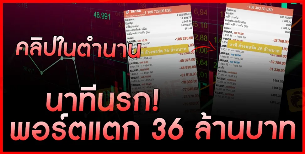 เปิดคลิปในตำนาน นาทีนรก! จังหวะที่พอร์ต Forex ระเบิดกระจาย เงินหาย 36 ล้านบาทในพริบตา อะไรทำให้เจ้าของพอร์ตกล้าลงเงินแบบไม่ยั้ง แล้วมาล้างพอร์ตสูญเสียมหาศาลแบบนี้ เราจะเล่าให้ฟัง!