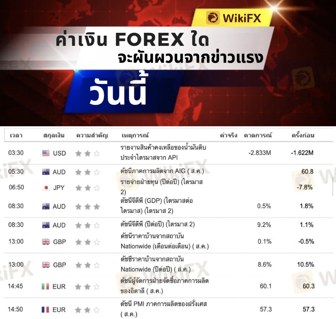 บทคัดย่อ:สกุลเงิน Forex ใดจะ 'ผันผวน' จากข่าวแรง / ตารางข่าว (1 กันยายน 2564)