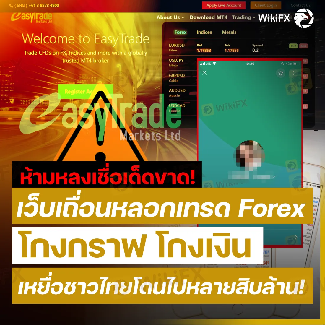 ไม่เตือนไม่ได้จริง ๆ เพราะได้ข่าวหนาหูมากว่า ‘โบรกเกอร์ EasyTrade’ กำลังกระจายกำลังไปหลอกคนไทยให้ลงทุน แต่ไม่มีใครได้กำไรจริง ๆ เลยซักราย เงินต้นก็ถอนไม่ได้ มีแต่โกง โกง โกงๆ
