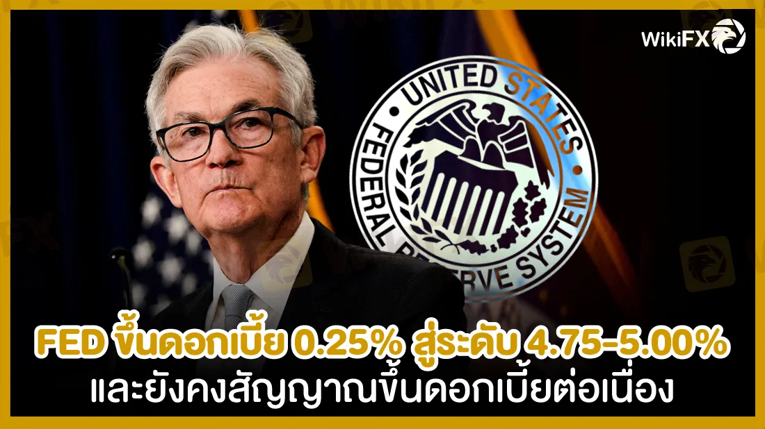 ตามที่สำนักข่าว CNBC รายงานว่า คณะกรรมการนโยบายการเงิน (FOMC) ของธนาคารกลางสหรัฐอเมริกา (FED) มีมติเป็นเอกฉันท์ปรับขึ้นอัตราดอกเบี้ย 0.25% ขึ้นเป็น 4.75-5.00% การปรับขึ้นอัตราดอกเบี้ยครั้งนี้นับเป็นครั้งที่ 9 ตั้งแต่เดือน มี.ค. ปีที่แล้ว ซึ่งเป็นระดับสูงสุดนับตั้งแต่เดือนตุลาคม 2550 ซึ่งการปรับขึ้นอัตราดอกเบี้ยในครั้งนี้เป็นไปตามที่นักวิเคราะห์หคาดการณ์กันไว้