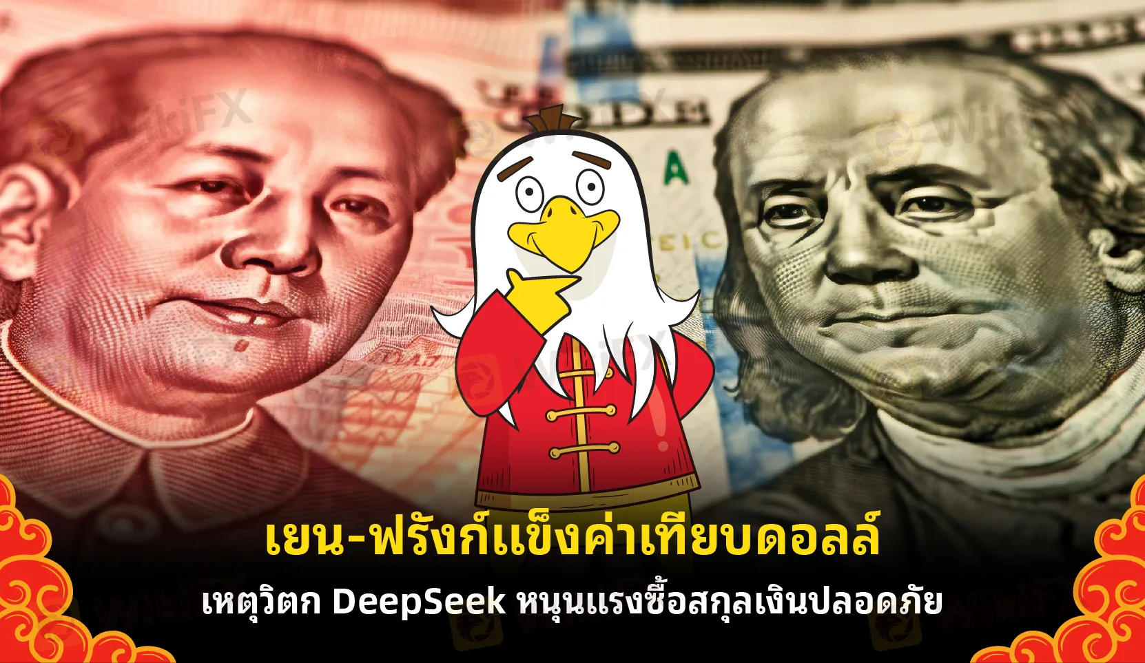 สกุลเงินเยนและฟรังก์สวิสแข็งค่าเมื่อเทียบกับดอลลาร์สหรัฐ ในการซื้อขายที่ตลาดปริวรรตเงินตรานิวยอร์กในวันจันทร์ (27 ม.ค.) เนื่องนักลงทุนพากันเข้าซื้อสกุลเงินปลอดภัย ท่ามกลางการทรุดตัวของหุ้นกลุ่มเทคโนโลยี หลังการเปิดตัวโมเดล AI จากบริษัทดีปซีค (DeepSeek) ของจีน ซึ่งอาจส่งผลกระทบต่อตลาดเทคโนโลยีของสหรัฐฯ
