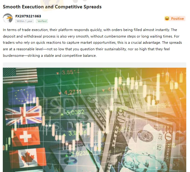 เนื้อหาการรีวิว: ในแง่ของการดำเนินการซื้อขาย แพลตฟอร์มของพวกเขาตอบสนองได้อย่างรวดเร็ว โดยคำสั่งซื้อจะถูกดำเนินการเกือบจะทันทีทันใด กระบวนการฝากและถอนเงินก็เป็นไปอย่างราบรื่นมาก โดยไม่มีขั้นตอนที่ยุ่งยากหรือระยะเวลารอคอยที่ยาวนาน สำหรับเทรดเดอร์ที่พึ่งพาการตอบสนองอย่างรวดเร็วเพื่อคว้าโอกาสในตลาด นี่ถือเป็นข้อได้เปรียบที่สำคัญ สเปรดอยู่ในระดับที่สมเหตุสมผล—ไม่ต่ำจนทำให้คุณสงสัยในความยั่งยืนของมัน และไม่สูงจนรู้สึกว่าเป็นภาระ—สร้างสมดุลที่มั่นคงและแข่งขันได้