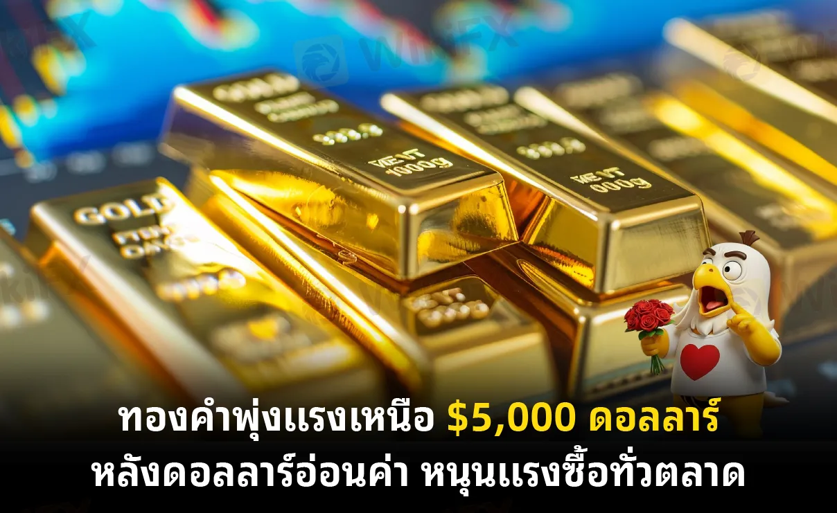 บทคัดย่อ:ราคาทองคำโลกปรับตัวขึ้นแรงและกลับมายืนเหนือ 5,000 ดอลลาร์ จากแรงหนุนของดอลลาร์อ่อนค่าและความต้องการสินทรัพย์ปลอดภัย ขณะที่นักลงทุนจับตาข้อมูลเศรษฐกิจสหรัฐ เช่น ตัวเลขจ้างงาน CPI และยอดค้าปลีก เพื่อประเมินทิศทางดอกเบี้ยของเฟด ตลาดคาดอาจเริ่มลดดอกเบี้ยกลางปี ซึ่งช่วยหนุนทองคำ นอกจากนี้ อุปสงค์จากธนาคารกลางทั่วโลกยังแข็งแกร่ง สะท้อนบทบาททองคำในฐานะสินทรัพย์สำรองระยะยาว โดยแนวโน้มราคายังขึ้นกับข้อมูลเศรษฐกิจ ค่าเงินดอลลาร์ และนโยบายการเงินเป็นหลัก.