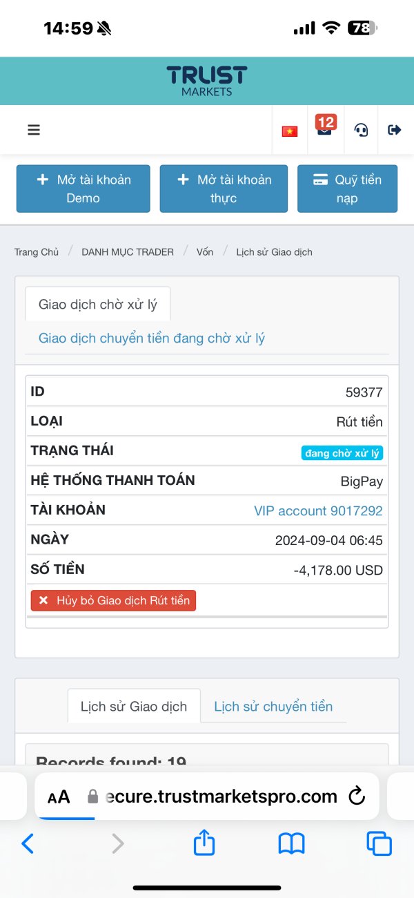 Tôi không thể rút tiền. Kính mong hỗ trợ!