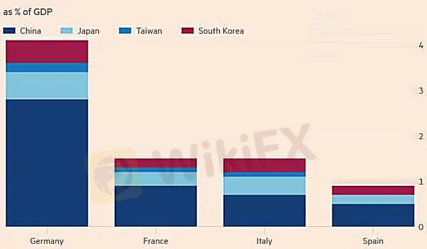 [Xuất khẩu của các nước Châu Âu sang Trung Quốc và các nước Châu Á] Nguồn: Financial Times