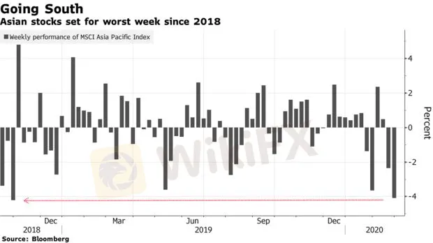 Chứng khoán toàn cầu trong tuần qua đã “tụt dốc không phanh” khi các trường hợp xác nhận nhiễm bệnh tăng mạnh ở Hàn Quốc, Nhật Bản và Italia. Chỉ số MSCI Châu Á Thái Bình Dương đã giảm hơn 8% kể từ mức cao nhất trong tháng 1 xuống dưới mức trung bình động 200 ngày lần đầu tiên kể từ tháng Mười, và tiếp tục mất hơn 4% trong tuần này. Tình hình hiện tại đang cho thấy những diễn biến xấu nhất tính từ tháng 10 năm 2018.