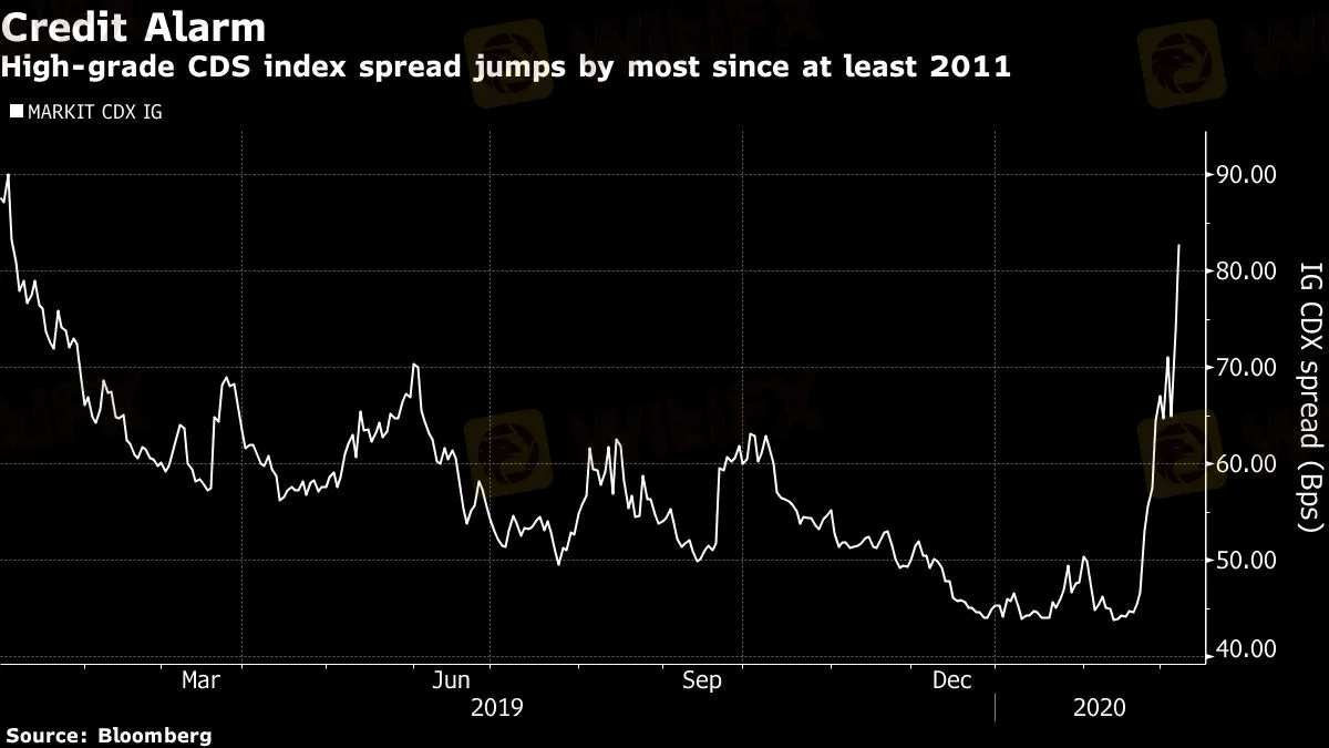 Thị trường tín dụng đã trải qua một ngày đen tối chưa từng có trong suốt 1 thập kỷ vào thứ Sáu tuần trước trong bối cảnh lo ngại rằng coronavirus sẽ làm tổn hại đến nguồn thu của các doanh nghiệp và cản trở khả năng hoàn trả nợ tín dụng của họ. Một chỉ số phái sinh đo lường rủi ro của tín dụng doanh nghiệp đã có mức tăng cao nhất kể từ năm 2011 và ở châu Âu, chi phí bảo hiểm nợ tài chính cao cấp cũng tăng vọt.