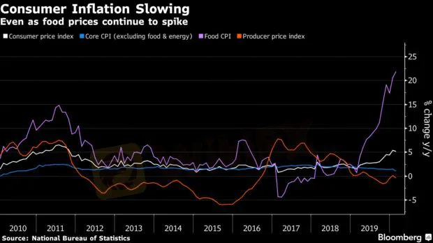 Tình hình giảm phát tại các nhà máy sẽ gây áp lực giảm giá trên toàn cầu, trong khi sự phân kỳ về giá cho thấy áp lực mâu thuẫn mà chính phủ Trung Quốc đang phải đối mặt trong thời điểm hiện tại. Nhu cầu và lạm phát nói chung đang chậm lại do coronavirus và nền kinh tế vốn đã đang trên đà suy yếu, nhưng các hộ gia đình vẫn phải đối mặt với hiện trạng giá lương thực cao hơn do ảnh hưởng của dịch cúm lợn châu Phi làm suy giảm nguồn cung.