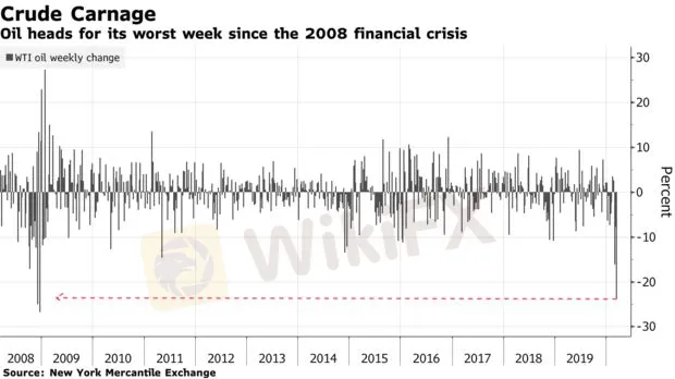 Giá dầu thô có mức giảm hàng tuần lớn nhất kể từ năm 2008 do cu sốc cung cầu kép chưa từng có, và hiện tại chưa có các dấu hiệu hạ nhiệt.