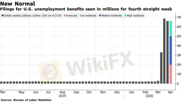 Các gợn sóng kinh tế do ảnh hưởng của đại dịch sẽ xuất hiện trong nhiều bộ dữ liệu khác nhau của Hoa Kỳ, dẫn đầu là sự sụt giảm được dự báo là lớn nhất về doanh số bán lẻ trong ít nhất ba thập kỷ qua, cộng với một trong những lần sụt giảm lớn nhất sau Thế chiến II về dữ liệu sản xuất công nghiệp. Dữ liệu thất nghiệp ban đầu có thể lên tới con số hàng triệu trong tuần thứ tư liên tiếp.