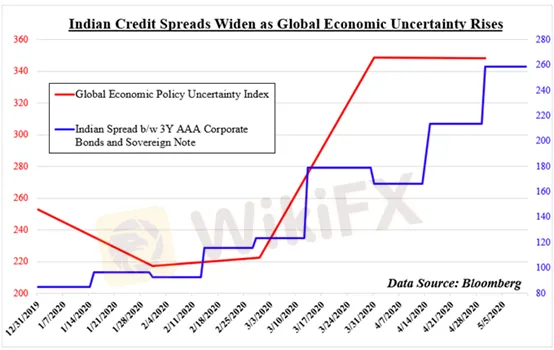 Kể từ đầu năm nay, chênh lệch tín dụng của Ấn Độ đã mở rộng, với chênh lệch dao động quanh 260 điểm cơ bản. Sự chênh lệch tín dụng Ấn Độ có thể bắt nguồn từ sự khác biệt giữa trái phiếu doanh nghiệp AAA Ấn Độ và cùng mức trái phiếu chính phủ có chủ quyền.