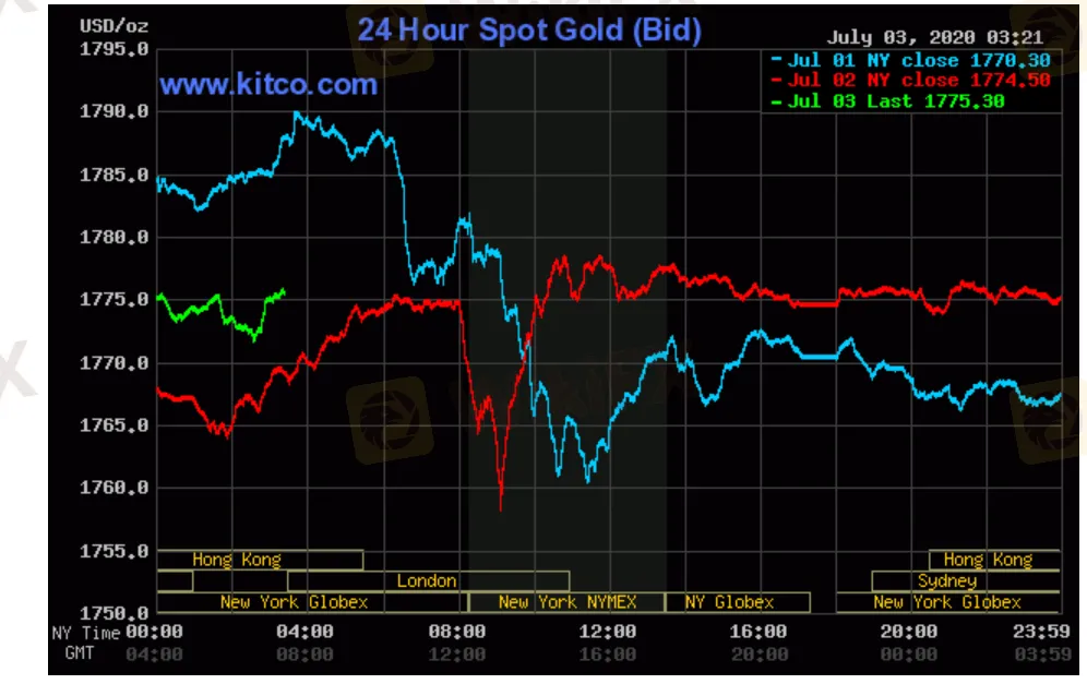 Cụ thể, giá vàng giao ngay tăng 0.05%, giao dịch ở mức 1775.30 USD/ounce theo Kitco, vàng giao tháng 8 ở mức 1786.1 USD.