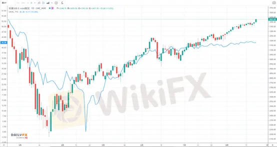 (Hình ảnh so sánh giữa chỉ số chứng khoán Mỹ và chỉ số dầu thô)