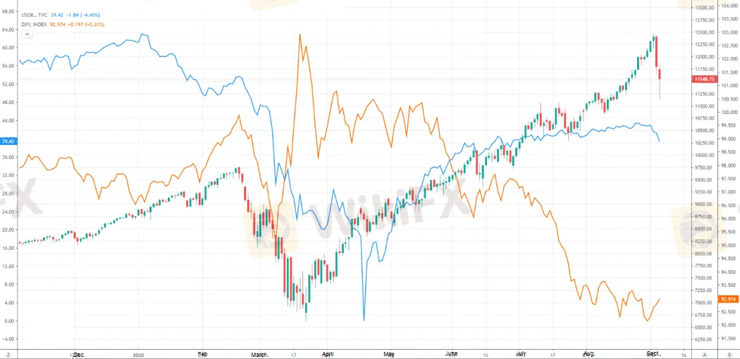 Gần đây, sau khi Hoa Kỳ công bố dữ liệu NFP tháng 8, chỉ số đô la Mỹ và lợi suất trái phiếu của Hoa Kỳ đã phục hồi. Chỉ số USD đã tăng lên mức cao nhất trong ngày là 93.24, thiết lập mức cao mới trong một tuần; giá dầu thô WIT giảm xuống mức thấp nhất trong ngày là 39.35 đô la, cũng là mức thấp mới trong tháng tính đến thời điểm hiện tại.