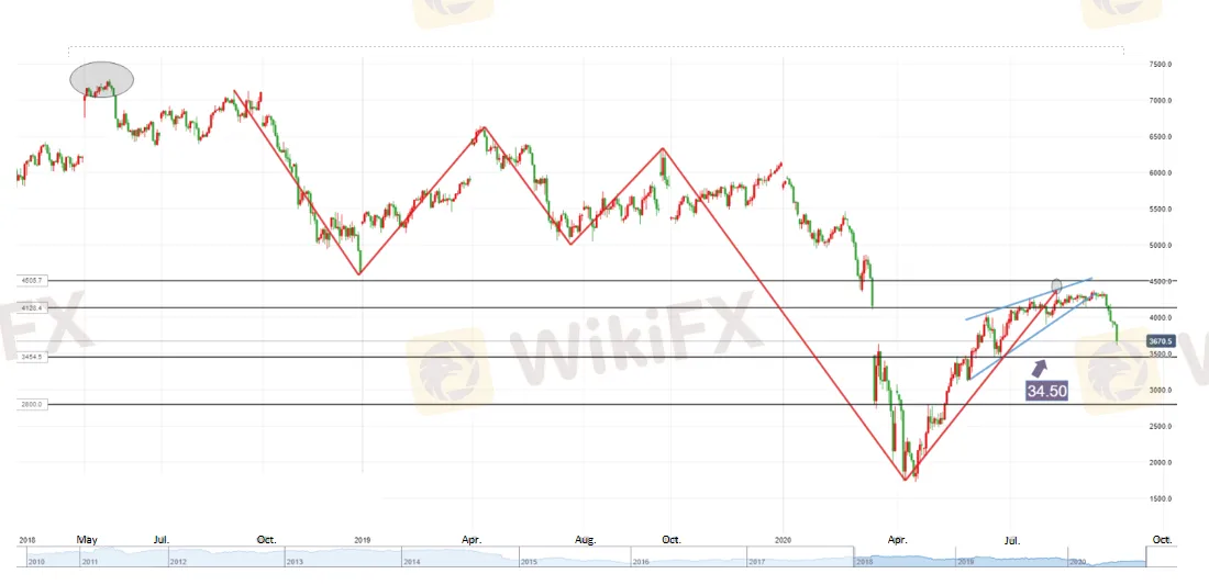 Biểu đồ hàng ngày cho thấy giá dầu hiện tại đã tiệm cận quanh mức 34,50 đô la, và dự kiến giá dầu sẽ đạt được một số hỗ trợ trong khu vực này. Từ quan điểm dài hạn, giá dầu có thể có xu hướng kiểm tra mức hỗ trợ dưới 30 USD trong trung hạn sau khi trải qua đợt giảm mạnh do cuộc chiến giá cả giữa Saudi Arabia và Nga.