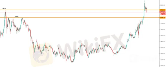 Giá vàng gần đây đã vuột khỏi mốc 1.900 USD. Đánh giá từ tình hình hiện tại, mức giảm dưới 1800 có thể kích hoạt mức điều chỉnh lớn hơn hoặc thậm chí là giảm sâu trong ngắn hạn.