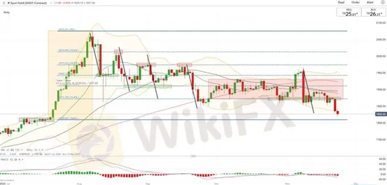 Ngoài ra, Biden đã đề cử cựu Chủ tịch Cục Dự trữ Liên bang Janet Yellen làm Bộ trưởng Bộ Tài chính, điều này sẽ có tác động đáng kể đến các chính sách tài khóa và thuế của Mỹ. Vàng đã giảm xuống dưới ngưỡng hỗ trợ quan 1870 và có thể giảm sâu hơn nữa trong tương lai. Mức mục tiêu tiềm năng bên dưới cần chú ý đến là 1809.