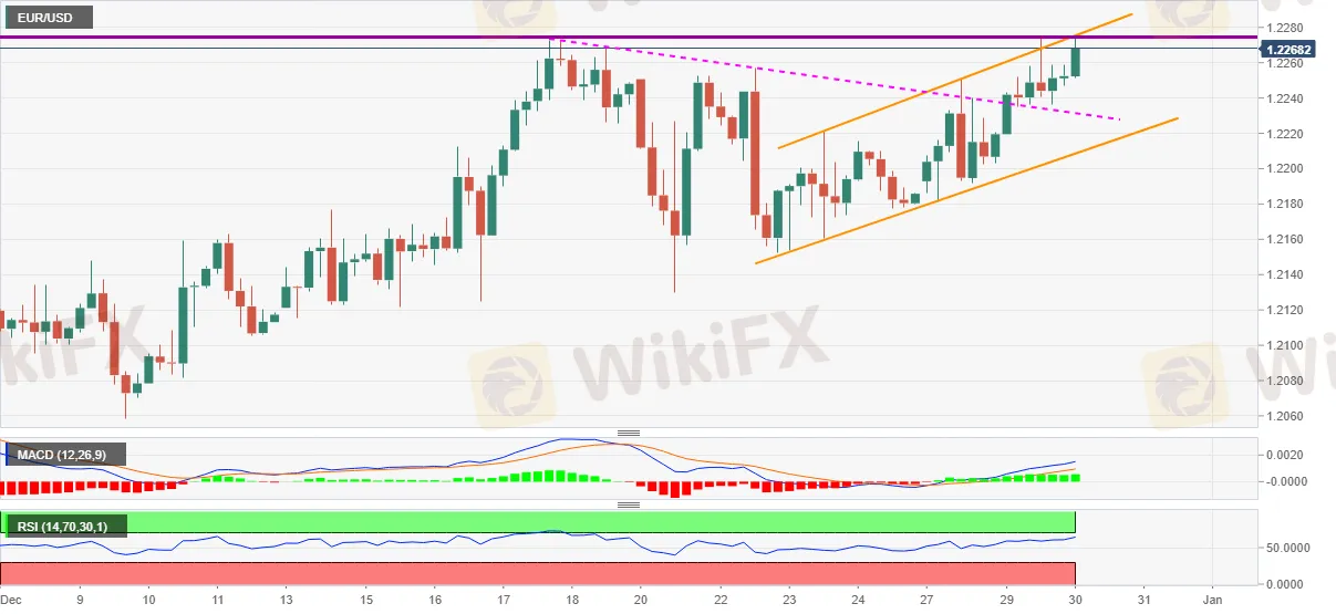 EUR/USD đánh dấu mức tăng 0,15% trong ngày, hiện ở khoảng mức 1,2275, trong khi vẫn giữ đà tăng của ngày hôm trước bên trong mô hình kênh xu hướng tăng dần trong phiên giao dịch châu Á hôm thứ Tư.