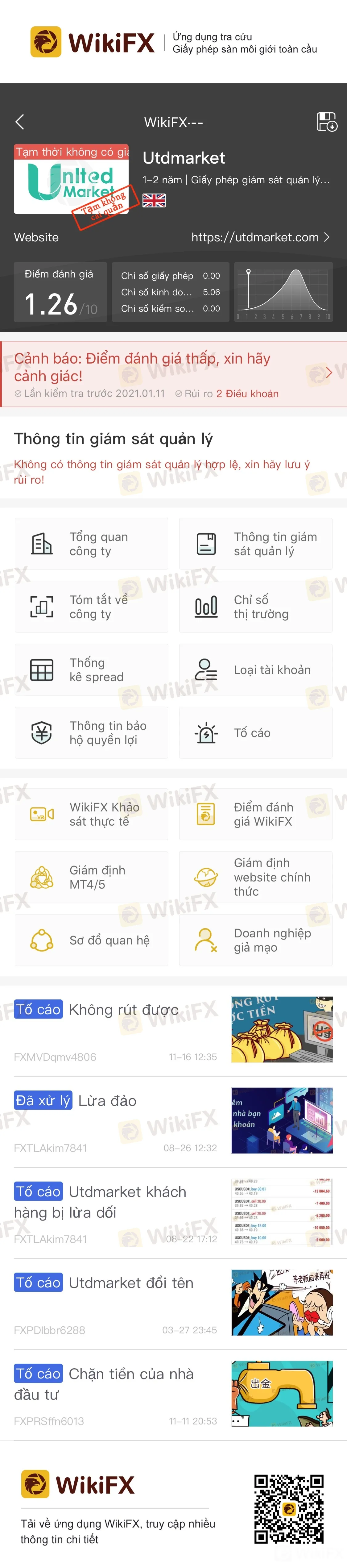 Lời nói đầu:Điểm đánh giá Utdmarket trên ứng dụng WikiFX là 1.20