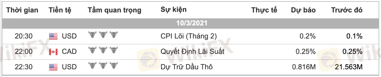 Các dữ liệu quan trọng phát hành trong ngày: