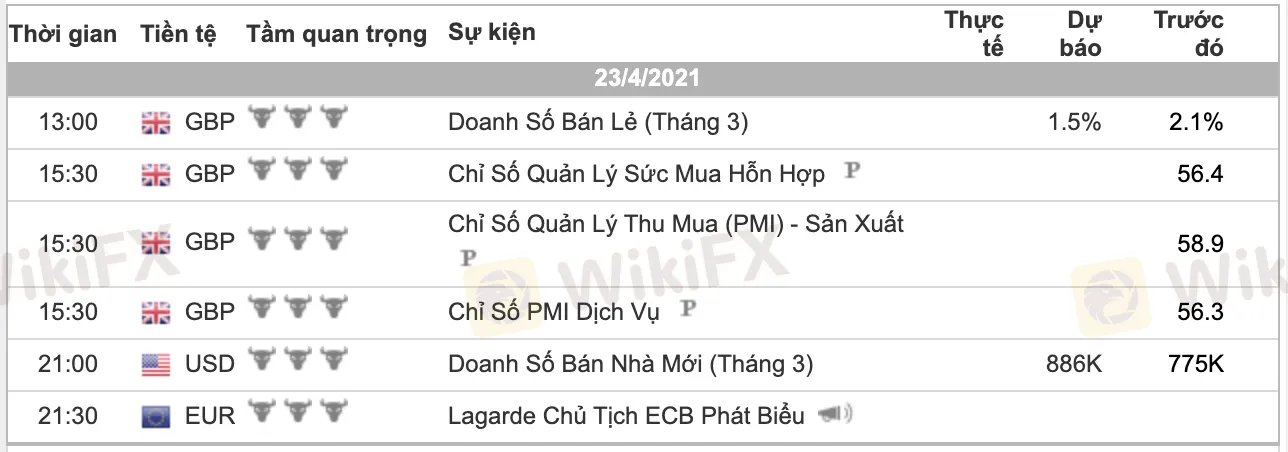 Các dữ liệu quan trọng công bố trong ngày:
