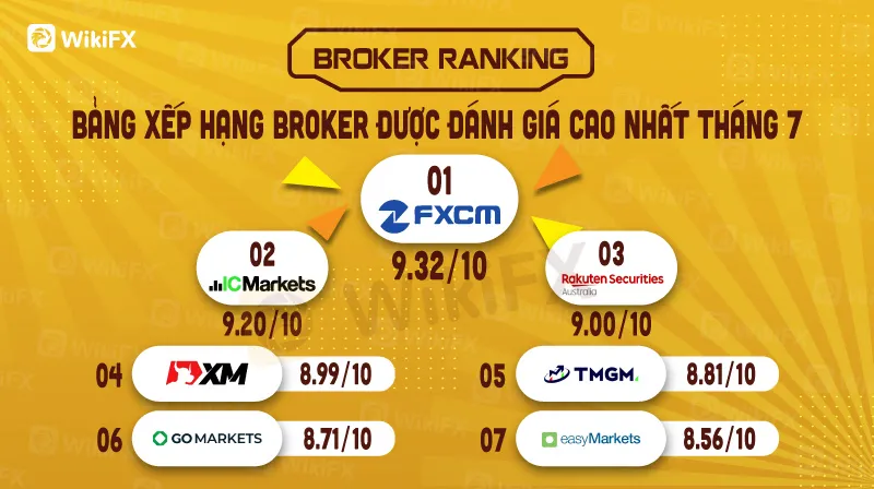 BẢNG XẾP HẠNG BROKER ĐƯỢC ĐÁNH GIÁ CAO NHẤT THÁNG 7