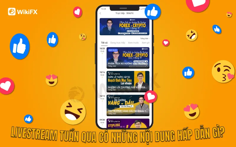 Tuần này WikiFX vẫn sẽ tiếp tục mang đến cho người xem những nội dung hấp dẫn. Nội dung chi tiết của 2 buổi phát sóng tuần này như sau: