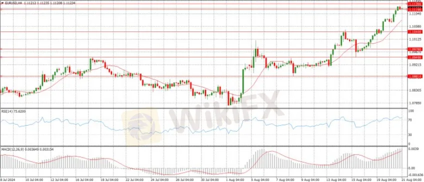 Đồng Euro tăng cao hơn so với Đô la Mỹ trong ngày thứ ba liên tiếp, đạt mức cao mới trong năm ở mức 1,1120. Sự gia tăng này được thúc đẩy bởi đồng đô la Mỹ suy yếu, khi các nhà đầu tư dự đoán Cục Dự trữ Liên bang sẽ bắt đầu hạ lãi suất vào tháng 9. Việc cắt giảm lãi suất tiềm năng của Fed, kết hợp với việc tăng lãi suất dự kiến của Ngân hàng Trung ương châu Âu, có thể giúp đồng Euro tăng thêm. Tuy nhiên, nền kinh tế Mỹ được dự đoán sẽ hoạt động tốt hơn châu Âu trong dài hạn, điều này có thể hạn chế mức tăng của đồng Euro. Các sự kiện quan trọng cần theo dõi trong tuần này bao gồm việc công bố Biên bản FOMC, PMI sơ bộ, bài phát biểu của Chủ tịch Fed Jerome Powell tại Jackson Hole và lời khai của Thống đốc Ngân hàng Trung ương Nhật Bản Kazuo Ueda.