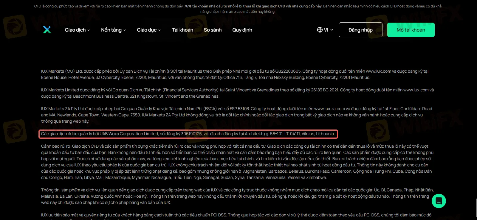 Tại sao WikiFX cảnh báo về việc IUX xử lý giao dịch qua công ty ở Lithuania?