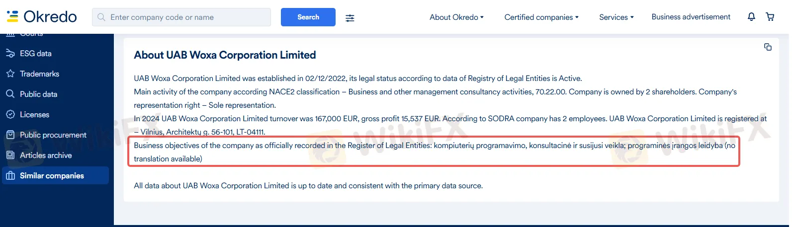 Tuy nhiên, hồ sơ công ty này trong Sổ đăng ký Pháp nhân Lithuania chỉ ghi nhận hoạt động chính là “tư vấn quản lý kinh doanh” và “lập trình máy tính”.
