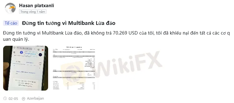 Dù có một số giấy phép, MultiBank Group vẫn nhận hàng trăm tố cáo về trì hoãn rút tiền và hủy lợi nhuận, bao gồm trường hợp mất hơn 70.000 USD. WikiFX đã nhiều lần cảnh báo sàn này.
