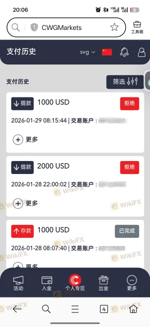 CWG Markets 故意封禁帳號,維權困難 我做單虧錢