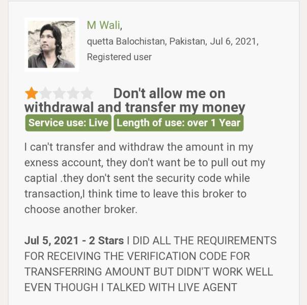 A client could not withdraw or transfer money from his exness account, now he wants to leave this broker for another broker.